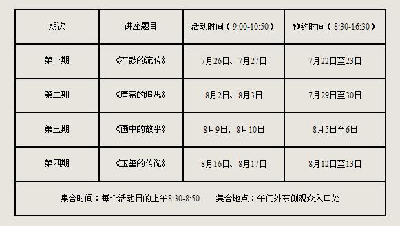 讲座题目:《石鼓的流传》、《唐窑的追思》、《画中的故事》、《玉玺的传说》。
