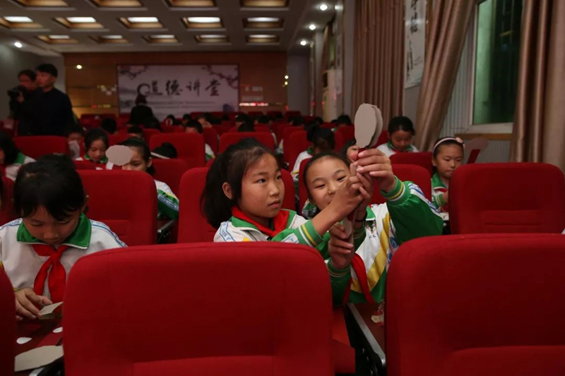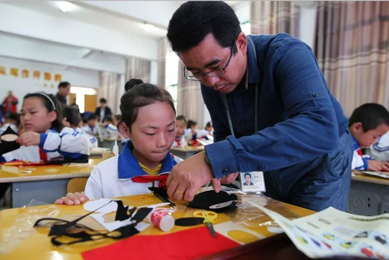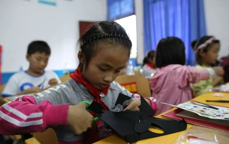 9月27日,故宫宣教部工作人员沿着险峻的湘川公路来到位于湘黔渝交界的花垣县,当地花垣县第二小学的在校生中有95%是少数民族同学。针对学校的民族特性,故宫为孩子们带去了“甲胄八旗”教育课程。课程讲述了由北方少数民族所创建的八旗制度,参与活动的同学可以了解到清代八旗武备知识,并在老师的指导下经裁剪、粘贴等步骤,最终获得一个自己亲手制作的八旗娃娃平面人偶。