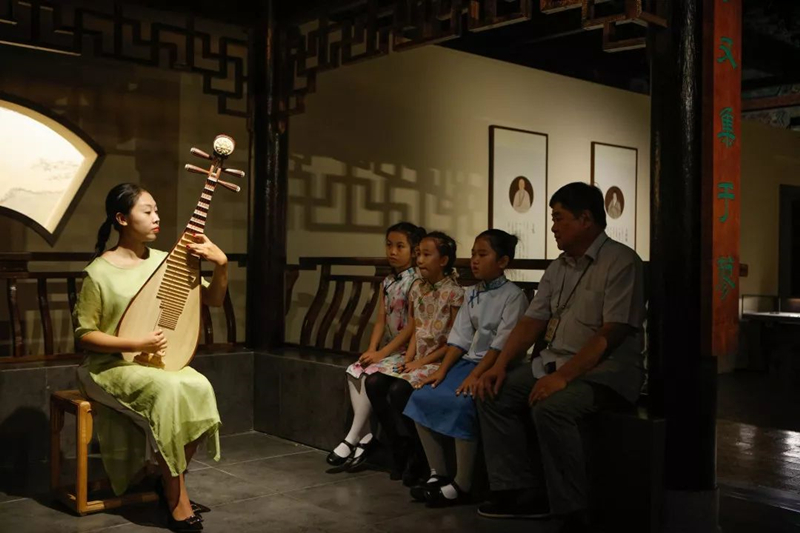 为配合书画展独有的悠然闲适的气氛,让观众更好地体会古代文人画作的情景意境,宣教部面向社会公开招募民乐演奏志愿者,短短一周时间,就有50位民乐演奏爱好者报名参与。最终,结合了乐器种类、演奏水平与时间安排等因素,宣教部从中选出12位,作为配合“四王展”演奏的民乐表演志愿者。这些人中,有从3岁起学琴至今的专业演奏者,有学艺俱佳的在校大学生,还有爱好传统音乐的在职工作者。