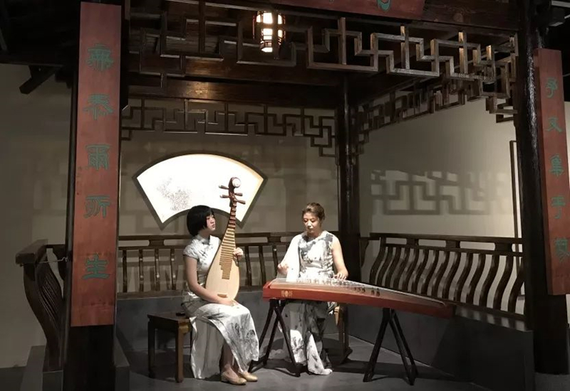 对故宫的热爱和对民乐的执著使他们在文华殿相会,古琴、古筝、琵琶、笛、箫汇聚一堂,为观众带来了雅致曼妙的音乐盛宴。每逢演奏时间,都有大量观众驻足欣赏,演奏者们精湛的演奏技法获得观众的连连赞叹。一面看王翚的《庐山听瀑图》,一面听古琴《高山流水》;一边读王原祁的《溪山高隐图》,一边赏琵琶《平沙落雁》。经典绘画与传统古乐相得益彰,让人仿佛置身画中,流连忘返。
