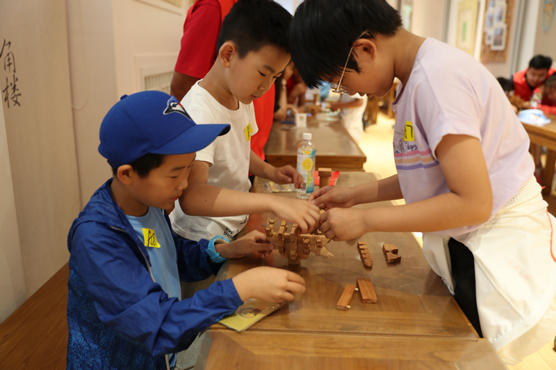 “赏故宫古建,品榫卯精华”为主题的古建课程,旨在普及中国古建筑构造的文化知识,揭示其所蕴含的工匠精神,加深人们的文化遗产保护观念。活动中,老师为小朋友和家长们实地讲解古建知识,带领大家观察太和门及周边古建的榫卯结构,并在课堂上结合古建模型,介绍榫卯结构的精妙之处。小朋友们在老师和助教的耐心指导下,亲手体验榫卯拼接,了解古建结构,探索古建奥秘。