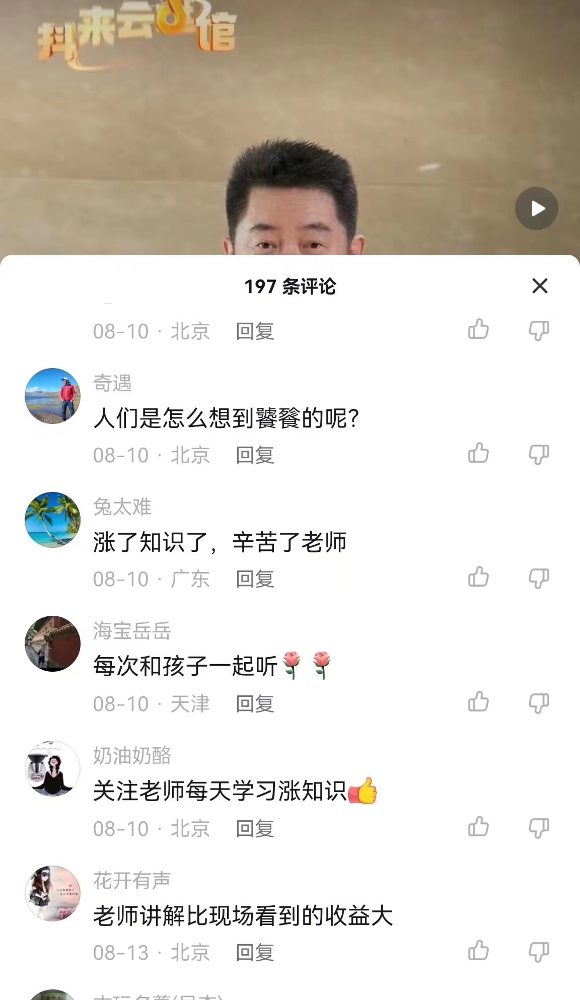 几乎每个科普短视频的评论区都有长长的观众留言:“老师的讲解比现场看收益更大”“涨知识了”。