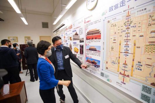 日前,教育大学赛马会小学正式引入“我们的故宫”教学资源,成为第一所加入该项目的学校。11月5日,该校专门成立中华文化室,集中展示项目下各类教育资源。香港特别行政区教育局局长蔡若莲博士和教育大学校长张仁良教授同为中华文化室揭幕,并详细观看了展板内容,对其趣味性、互动性、美观又通俗的特点赞不绝口。