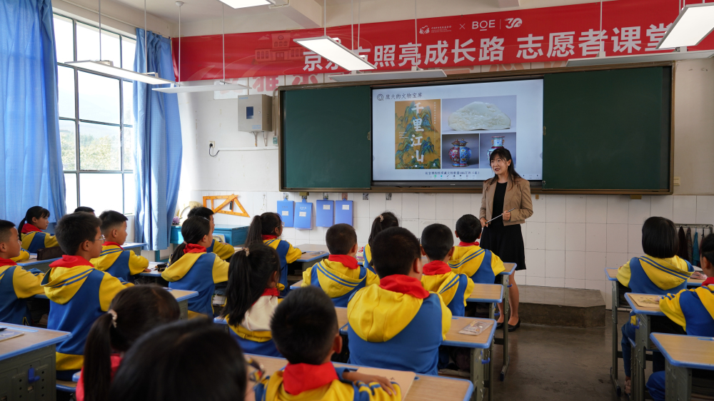 故宫博物院宣传教育部主任吕晓刚在致辞中表示,近年来,故宫博物院通过策划教育活动、视频课及出版物等丰富多彩的形式,将中华优秀传统文化传递给广大观众,积极影响着青少年群体。过去十余年来,故宫也在坚持践行公益发展,帮助各地区的孩子了解故宫、走近故宫。很高兴能够携手京东方这样的科技企业把传统文化带到乡村,希望通过未来的合作,能够让故宫公益课堂在孩子小小的心灵播下梦想的种子,让他们在成长的道路上收获更多信心与希望。