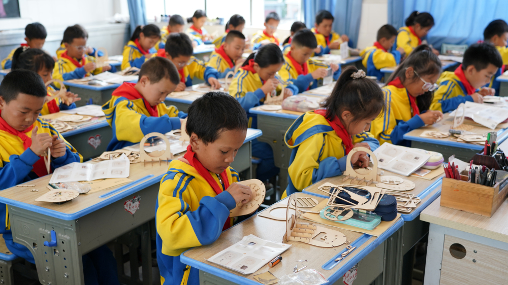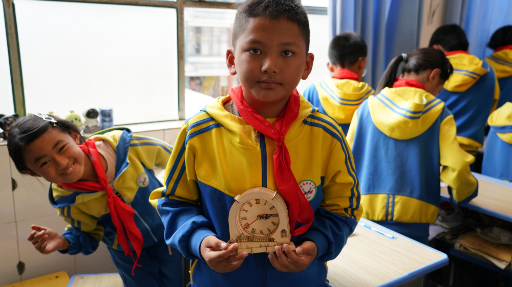 当天,故宫博物院老师为老营小学的学生们带来了第一堂故宫传统文化课——《紫禁城的时间见证》。课堂上,学生们在老师的带领下,追溯了中国传统的计时智慧,了解了西洋机械钟表传入中国的历史,欣赏了清代宫廷精致美丽的各式钟表。孩子们大开眼界,他们举起小手,积极地与老师交流互动。听课之余,孩子们还利用课程配套材料包,动手拼制了一台可以走时的木质小钟表,获得了一份来自故宫的珍贵文化礼物。