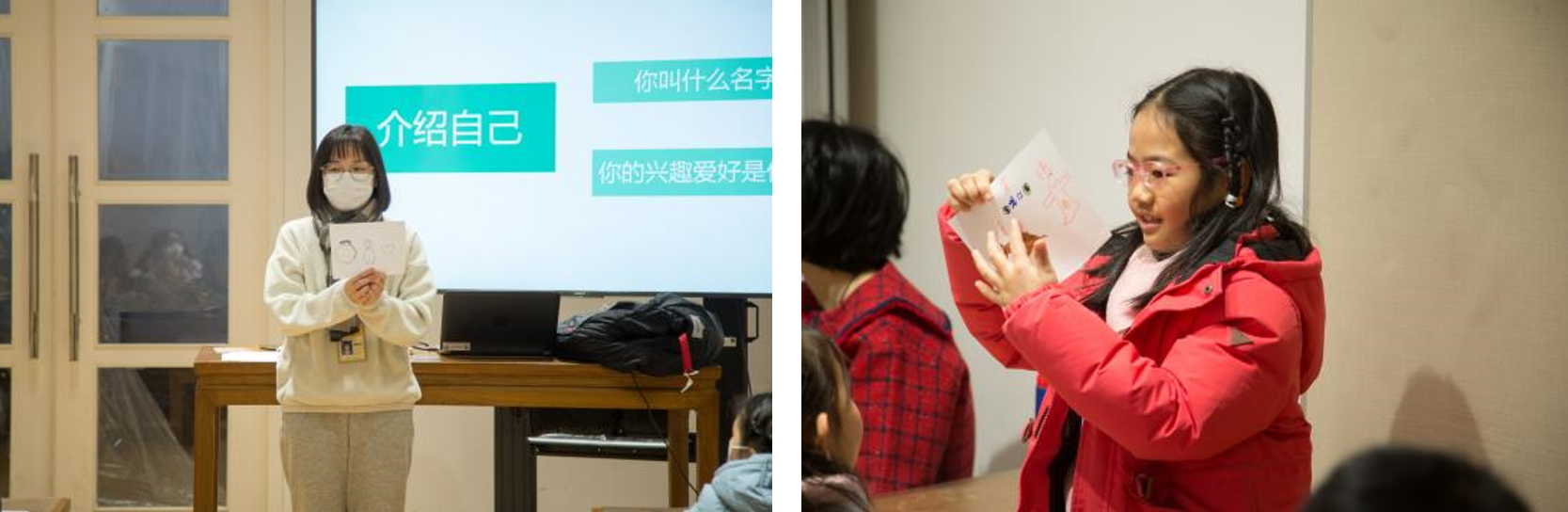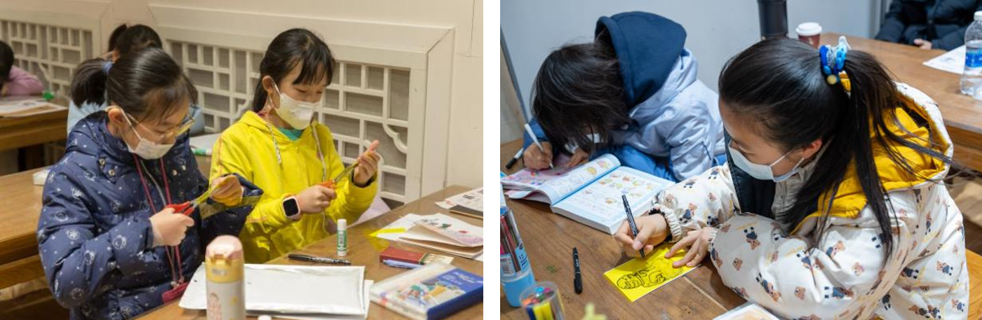 工作坊以“破冰”起始。孩子充分发挥想象力,画出自己的名字,再用简单的语言依据姓名画进行自我介绍。一张张趣味小画成为打破孩子之间隔阂的敲门砖,课堂气氛就此渐渐活跃了起来。
