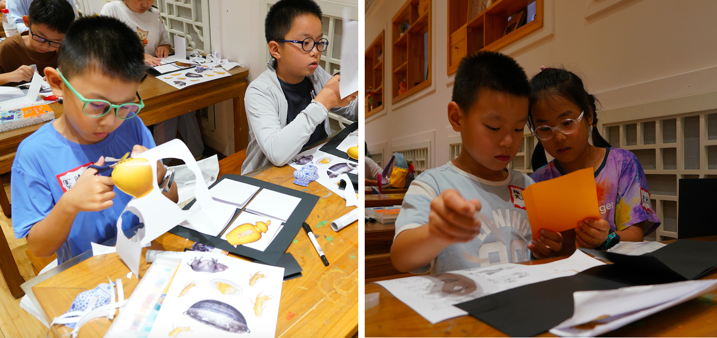 “故宫里的零废弃”线下艺术工作坊,则包含了故宫“零废弃”的古与今。一方面,来自社教部的专业老师,带领学生认识天然材料、人工材料的区别及其背后的“零废弃”理念,并从文物的设计制作,故宫零废弃设施的建造管理中,感受今日“绿色故宫”的建设成果,引导学生思考探讨“零废弃”生活的未来。另一方面,运用所学知识和超简易材料,与学生一起动手创作专属“零废弃”立体绘本书,用生动活泼的形式,记录了当天的学习与思考。