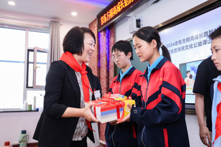 故宫博物院副院长朱鸿文在致辞中表示,“故宫博物院作为中华民族五千多年文明的重要承载者、中华优秀传统文化的汇聚地,始终将传承弘扬中华优秀传统文化作为己任,不断探索创新,希望通过丰富多彩的博物馆教育项目,将中华优秀传统文化传递给广大观众。很高兴能够携手京东方这样的科技企业通过传统文化振兴乡村发展,在以科技赋能偏远地区提升数字化水平的基础上,融入传统文化教育,增强师生文化自信,建设文化强国,助力中华民族伟大复兴。”故宫博物院也在活动中向学校的全体师生赠送了《我要去故宫》系列图书。
