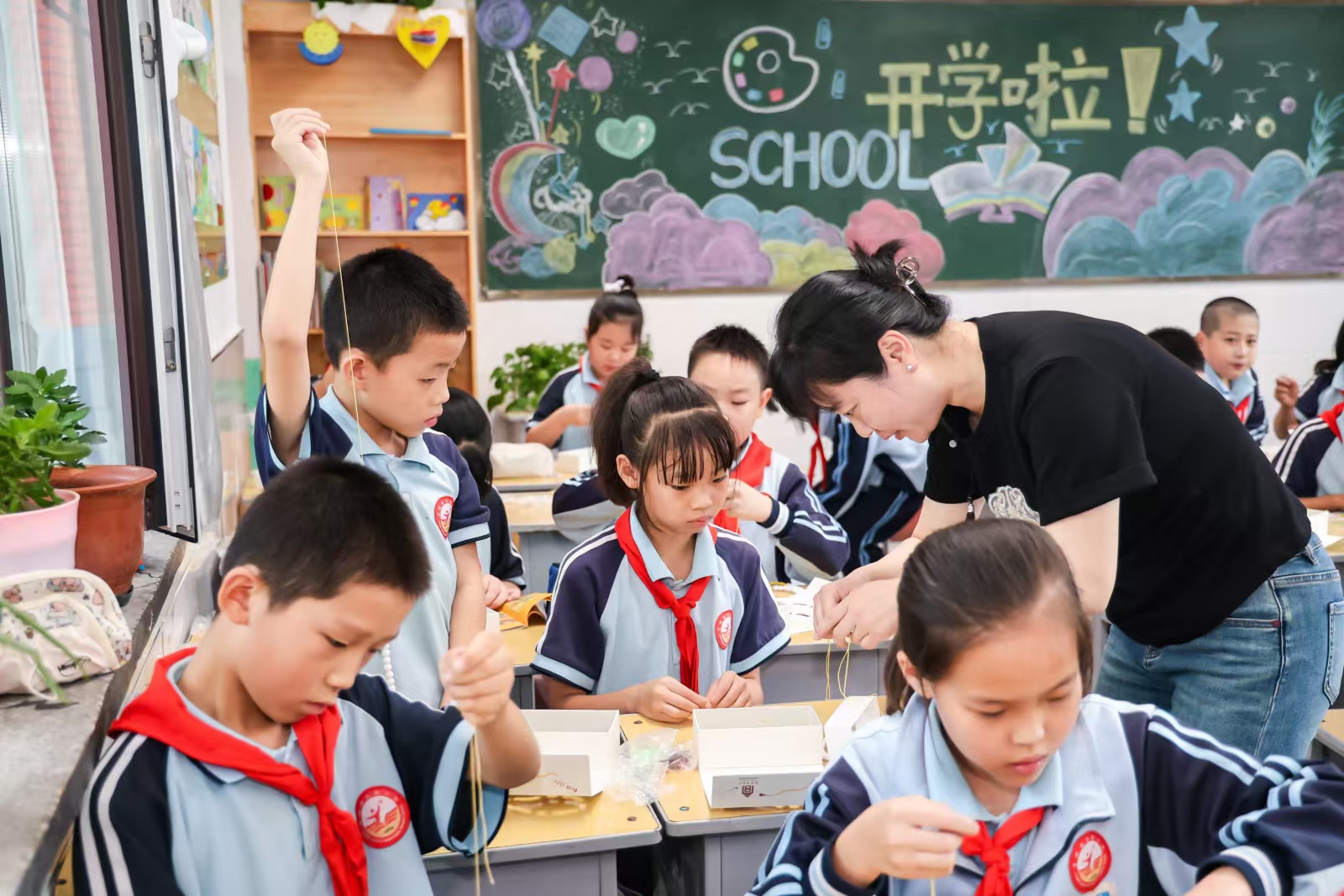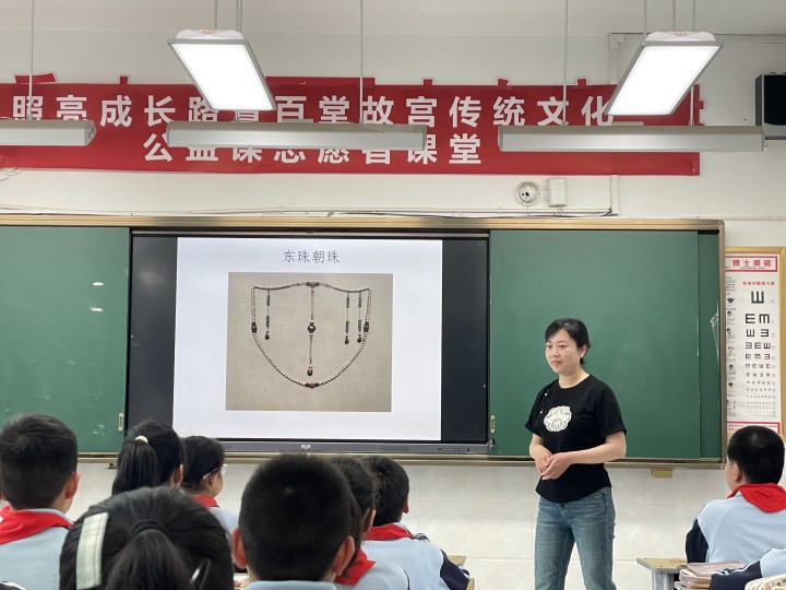 当天上午,故宫博物院社会教育部的老师为娄烦实验小学的学生们带来了一堂故宫传统文化课——《朝珠diy》。课堂上,老师分享了清朝的配饰——朝珠的来源与组成部分,带领学生们对比观察不同朝珠颜色、数量、方式的差别,课堂上孩子们积极与老师交流互动,充分了解了朝珠所蕴含的历史文化。听课之余,孩子们还利用课程配套材料包,动手制作了一串朝珠,获得了一份来自故宫的珍贵文化礼物。