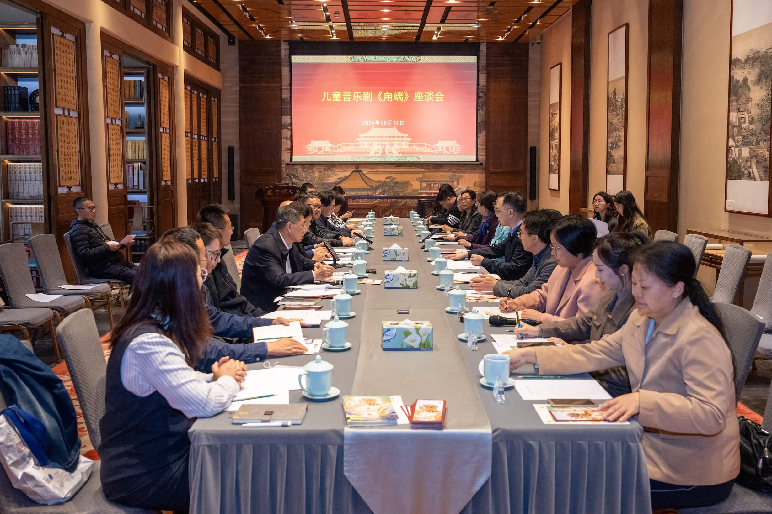 2024年10月31日,故宫博物院首部儿童剧《甪端》演出两周年座谈会在故宫博物院建福宫花园敬胜斋召开。第十届全国人大常委会副委员长、中国关心下一代工作委员会主任顾秀莲,文化和旅游部党组成员、故宫博物院院长王旭东等30多位领导、专家、主创代表、观众代表出席了座谈会。