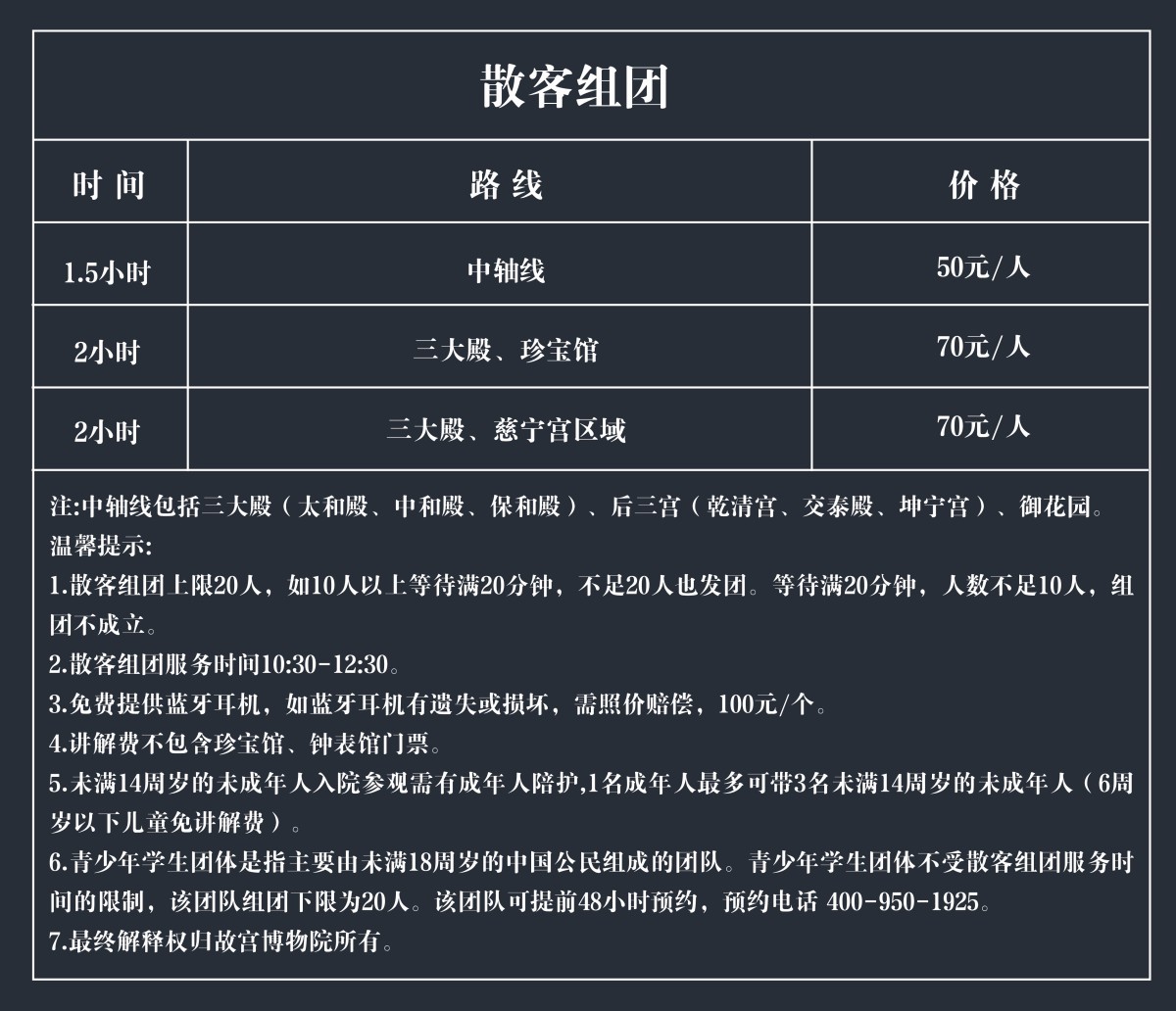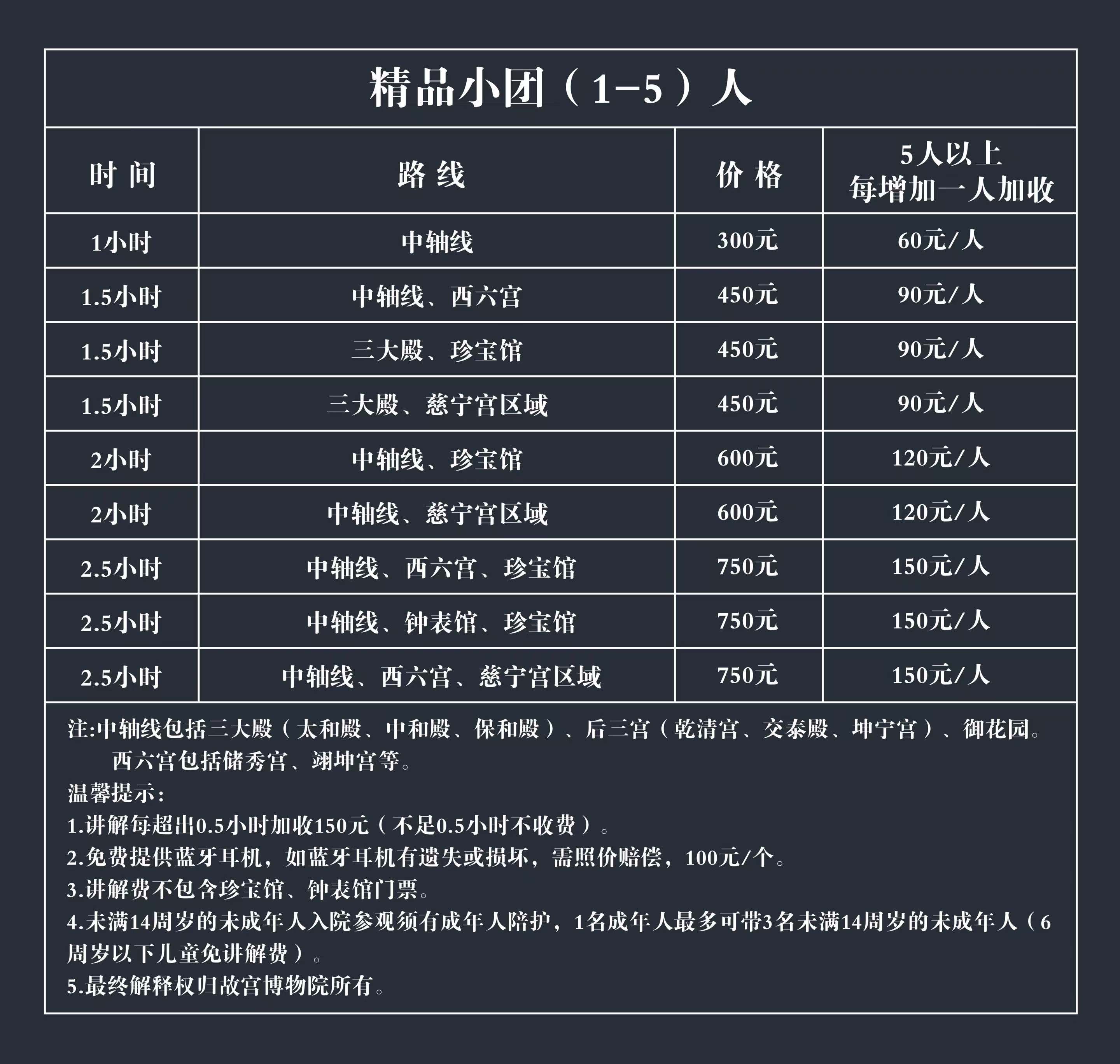 《故宫博物院讲解服务路线与讲解服务收费标准》
