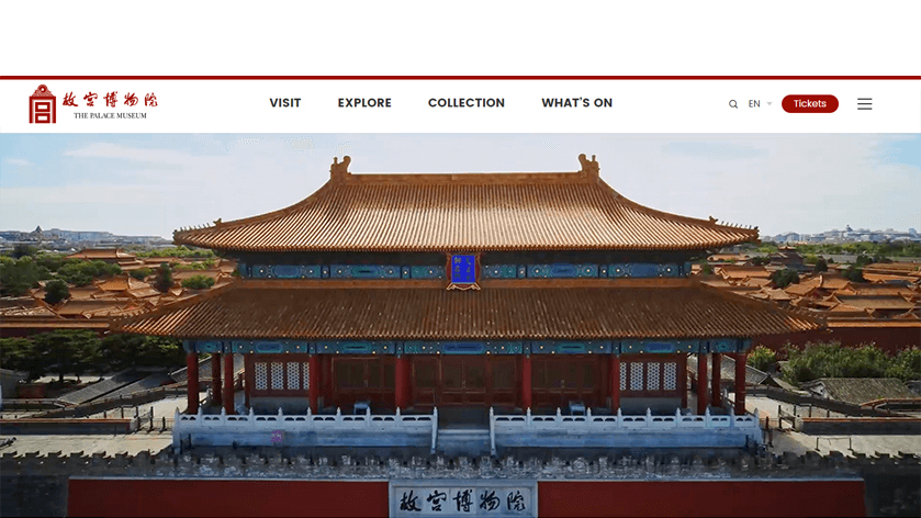 故宮博物院官方網站有中、英、法、俄、日、西多種語言。包括參觀服務、資訊查詢、全景遊覽、雲逛展覽、藏品欣賞、文化專題、故宮資訊等豐富內容。網站可以同時支援電腦及各类流動裝置,滿足海內外觀眾多元化訪問需求。