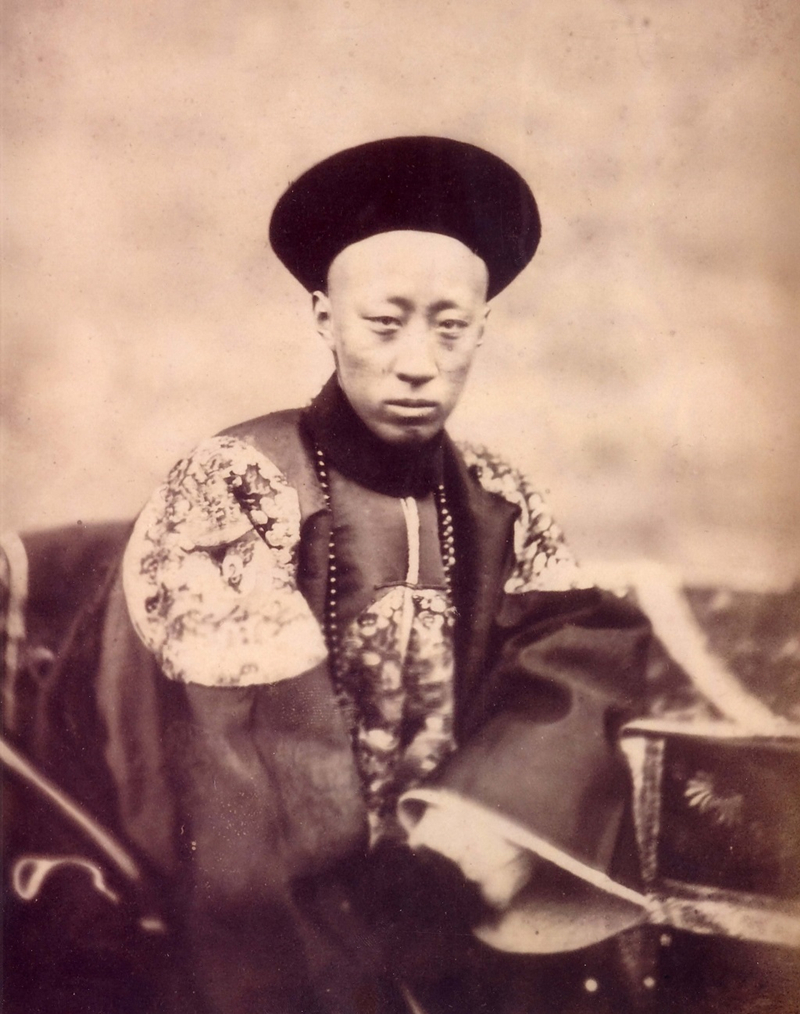 1860年,第二次鸦片战争中英法联军进占北京,劫掠并焚毁了以圆明园为代表的三山五园,北逃热河的咸丰帝留下恭亲王奕与洋人议和。期间,随军摄影师意大利人比托(felice beato 1832-1909)拍摄了这位皇弟的两张照片。此前,恭亲王的岳丈大学士桂良在1858年签订《天津条约》时曾两度留下照片。此二人照片均保存至今,这当是清代宫廷与摄影术的再次邂逅。