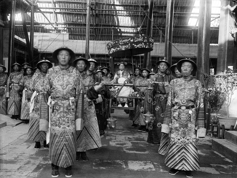 第二次鸦片战争后,根据不平等的《天津条约》和《北京条约》,外国人可以在中国游历,一些人便携带着照相设备深入到中国内地。这群人中既有外交官,也有商业摄影师。他们当中的佼佼者,如比托(felice beato 1832-1909)、汤姆逊(john thomson 1837-1921)、查尔德(thomas child 1841-1898)、德贞(john dudgeon 1837-1901)、谢满禄(comte de smalle 1849-1936)等人,均曾在北京拍摄过大量反映皇家宫殿、寺庙和园林的照片,有些人甚至还拍摄过一批朝廷大员的肖像,但是无一例外,他们都没能够进入紫禁城。遍查19世纪60-90年代史料,我们无法找到任何一位曾经进入过紫禁城或者在其他皇家空间里为慈禧、慈安两宫皇太后或同治、光绪皇帝拍照的确切记录。此其二。