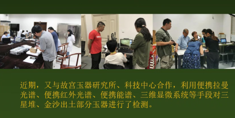 接着,主讲人围绕“何以为玉”,讲述了古蜀玉器玉料检测分析的方法和结论。他们与多家高校、科研机构合作,通过薄片显微光性鉴定、红外线光谱仪鉴定、油浸法晶体光学测定、电感耦合等离子体质谱仪测定、x射线荧光光谱分析等仪器检测方法对玉料的物理结构和化学成分进行观察和化验,依据监测数据来判断玉料矿物成分,得出初步结论:古蜀玉器材料以透闪石软玉为主,还有少量的阳起石、透辉石、斜长石、闪长石、滑石、大理石、叶腊石、绿松石、玛瑙等,玉料种类广泛,而部分玉器表现呈现红、紫、褐等丰富色彩主要是受埋藏环境影响。