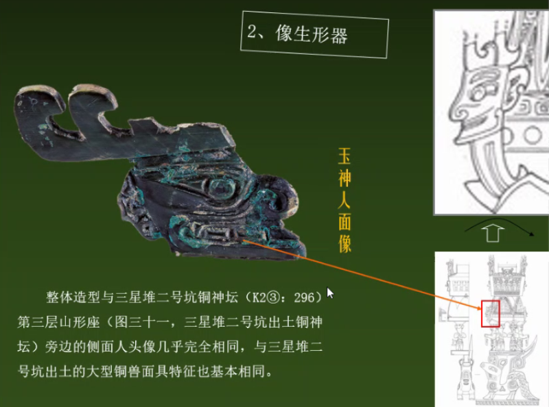 首先,主讲人从古蜀王国的文献历史记载和考古发现史出发,引出古蜀文明中神秘灿烂的玉文化。以古蜀文明遗址里最具代表性的三星堆遗址和金沙遗址为切入点,分别详细介绍两个遗址出土玉器情况,带领广大听众深入了解古蜀王国玉器。