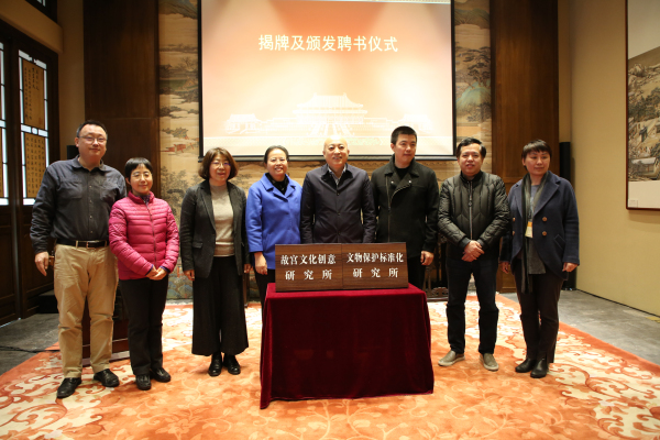 会上举行了新成立“文物保护标准化研究所”“故宫文化创意研究所”二所的揭牌仪式。随后,由王旭东院长为研究院各研究所所长、副所长颁发聘书。