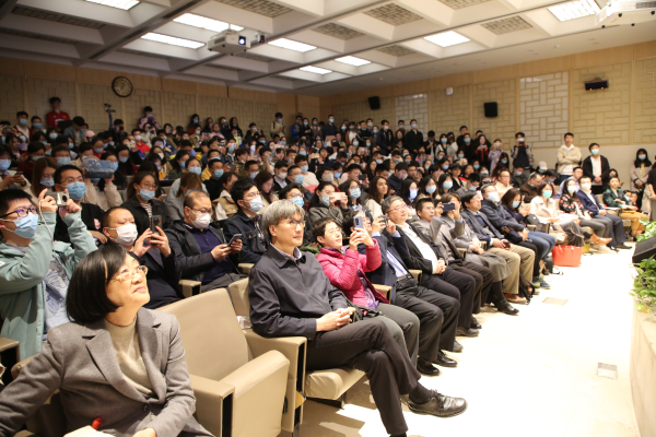 4月9日晚上的北大二体报告厅灯火辉煌,座无虚席,报告厅的每一个过道、角落,甚至门口都站满了热情的北大同学们,很多同学席地而坐。北大特地开设了分会场,使更多的同学能够通过视频观看聆听。春寒料峭,却挡不住北大同学的热情、对中华优秀传统文化的热爱和对故宫文化、学术的向往。故宫博物院副院长赵国英、北京大学副校长王博出席并聆听讲座。