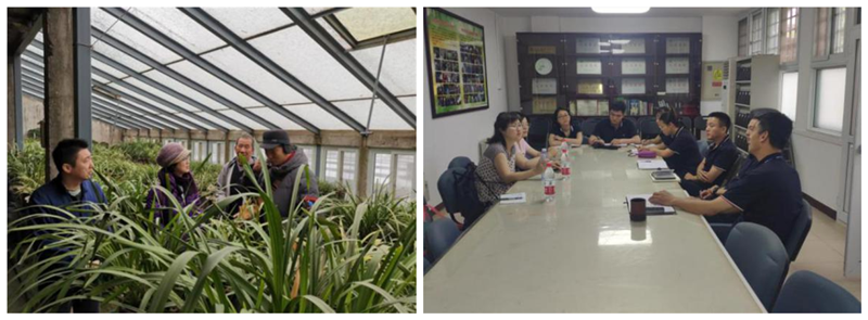 与中山公园管理人员苗圃探讨兰花养殖技术