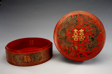 盛装子孙饽饽的红漆龙凤同和纹盒