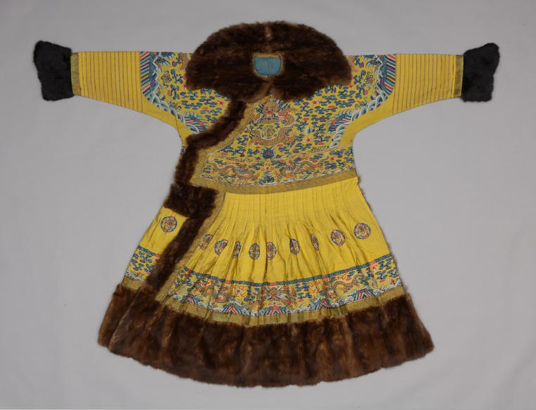 缂丝彩云金龙纹镶皮边朝袍