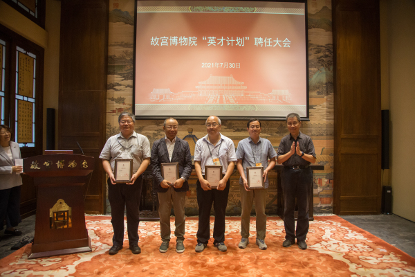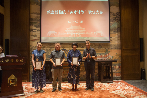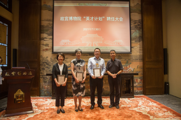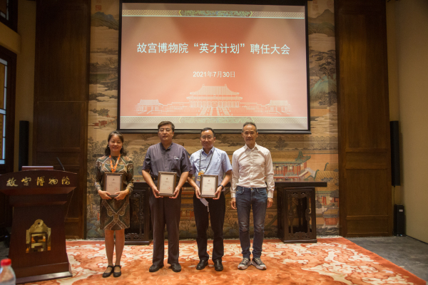 王旭东、都海江、王石、李季分别为“英才计划”导师颁发了聘书。导师代表故宫博物院器物部吕成龙和宫廷历史部罗文华发言,他们对“英才计划”作为以老带新、培养博物馆后备力量的人才工程给予充分肯定,表示将牢记故宫人的光荣使命和担当,潜心研究,提携后学,为故宫博物院培养更多优秀人才倾注心血,贡献力量。学术助理代表故宫博物院古建部程枭翀发言,他感谢本院为青年业务人员的成长和发展创造条件、提供平台,表示今后要脚踏实地,珍惜机会,拿出实实在在的成果为故宫博物院的业务和学术发展贡献自己的力量。