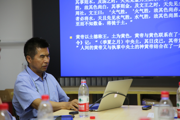 最后,故宫研究室主任王子林做了“紫禁城的颜色”的发言。首先引用《吕氏春秋》等史料讲述五行(金木水火土)五色(白、青或绿、黑、红、黄)的由来并逐渐演变成黄色成为最高等级颜色,五行相生,火生土,故红黄二色成为故宫主色调;东方南三所屋顶为绿色琉璃瓦,东方属木为青色;北方属水,故宫北门内东西大房为黑色琉璃瓦。紫禁城分东南西北中五方,五方与木、火、金、水、土五种元素结合在一起,按理应配上绿、红、白、黑、黄五色,但主色调是红与黄,强调相生之理即火生土,若五方配上五色,必然造成相生相克的循环无法解脱,故紫禁城颜色的配置充满智慧。