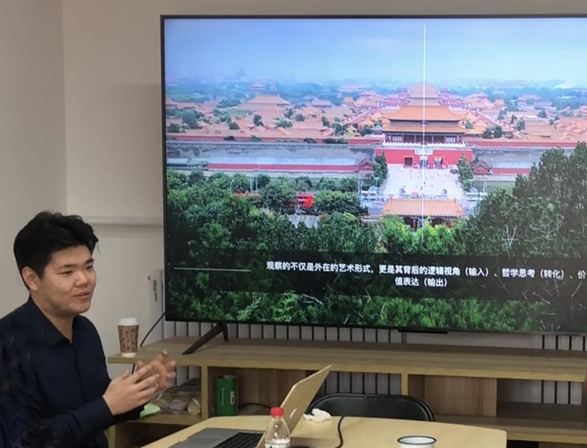 接受课程培训的同时,一汽红旗造型设计院设计师邹健宇分享了建筑、园林两次专题课程后的设计转化成果,阐释了设计和文化之间的内在联系。特别提到了第一届建筑论坛对设计师的启发,对宫廷建筑有了全新的理解,并通过实地考察,将建筑的纹样总结为具象纹样、抽象纹样和空间纹样。纹样实际上是一种装饰,可以是单独的,也可以是重复连续的,都具备文化寓意。园林是隐逸思想的一种表现形式,古代园林主要是在自然山水基础上,铺以人工的宫,廊、楼、阁等建筑,以人工手段效仿自然,其中透视着不同历史时期的人文思想,特别是诗、词、绘画的思想境界。设计师走访多处皇家园林,从形式上总结出,园林在设计构造中往往使用直曲聚散、横向纵向的手法堆砌建造。建筑和园林的空间布局手法将被运用于汽车设计之中,使汽车成为一种时尚、精致、高尚且具有深厚传统文化底蕴的科技产品。
