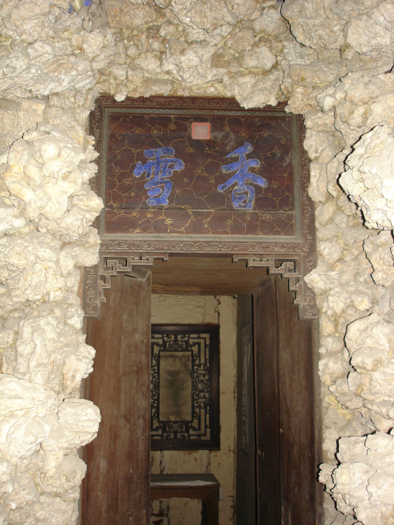 紫禁城内存在多处与书房有关的原状空间,其中最令人震撼的是香雪。香雪位于养性殿西暖阁中,属养性殿之西耳殿,是乾隆皇帝计划归政后颐养天年的太上皇宫中一处神秘的私人空间。进入养性殿西暖阁,向北穿过狭长的过道即进入有佛塔和挂满唐卡的仙楼,再向西穿过嵌有松竹梅图案的圆光门,即进入了一个和松竹梅主题密切相关的空间。再向南即进入长春书屋和香雪的世界。打开进入香雪的木门,室内由白色宣石堆叠而成的假山顶天立地,高低错落,占据了室内的大部分空间。宣石山背后是通体青蓝色背景的松竹梅花鸟贴落。香雪空间现较好地保存了乾隆朝的原状面貌,其整体给人带来巨大的视觉震撼。