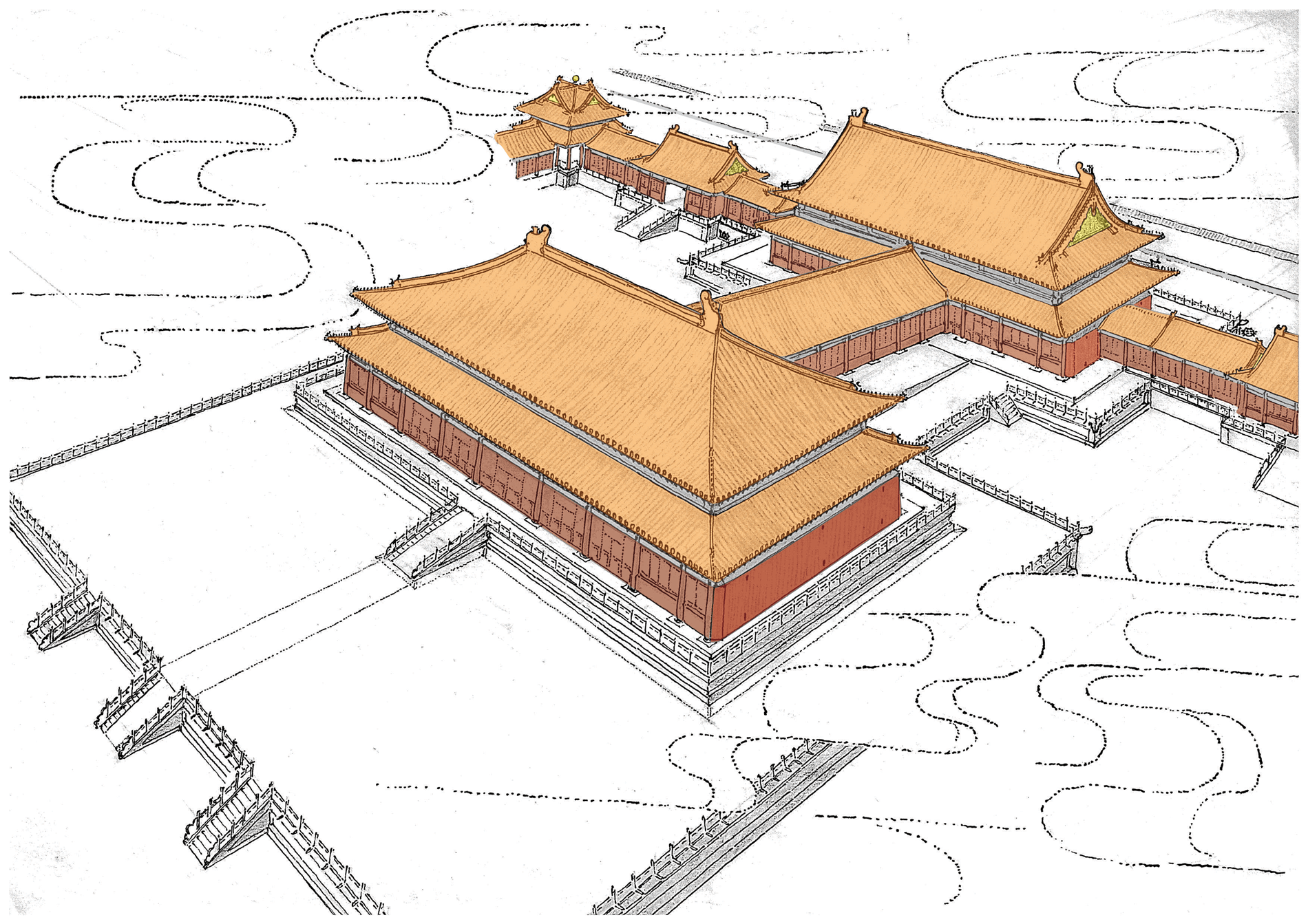 明中都前朝区宫殿的示意性复原(故宫李纬文绘)
