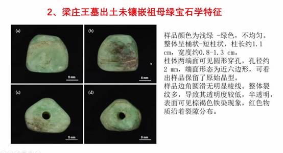 最后,主讲人分享了个人对梁庄王墓出土祖母绿产地来源的看法。梁庄王墓出土了50粒祖母绿,数量可观。历史上,在15世纪之前世界祖母绿产地主要是埃及、奥地利和巴基斯坦,其他祖母绿产地如哥伦比亚、阿富汗、赞比亚、印度等首次开采时间都在16世纪以后,因此梁庄王墓出土祖母绿产地来源应属于埃及、奥地利和巴基斯坦这三个产地中的一个或多个。观察梁庄王墓出土未镶嵌祖母绿的内部包体、谱学特征和成分元素,基于此物是郑和下西洋带回国的前提,通多对比现有文献数据,初步推断其来源的最大可能性是古代埃及或奥地利。
