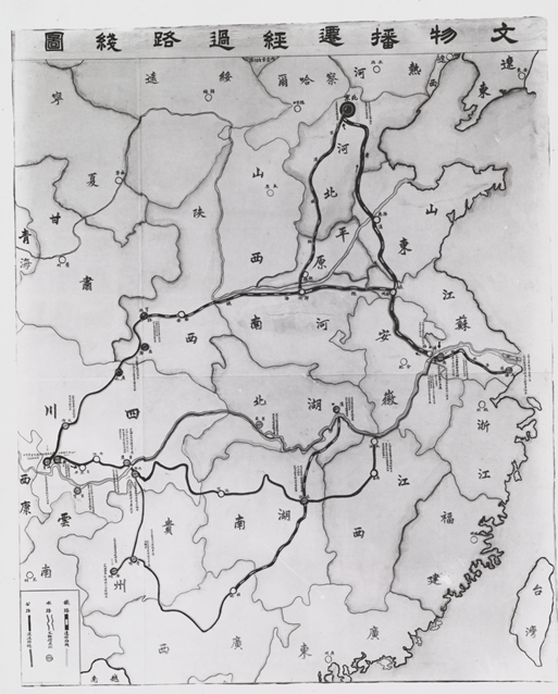 为更好地保存文物,经故宫博物院理事会多次讨论商议,国民政府教育部将金陵名胜朝天宫划归国立北平故宫博物院,作为设立南京分院及建筑保存库的地点。1936年9月26日,南京分院保存库落成,存放在上海天主堂街及四川路两处库房的文物箱件陆续转运至朝天宫保存库。1937年1月1日,国立北平故宫博物院南京分院正式成立,编制库房规则,继续文物点收,并策划陈列展览。1937年卢沟桥事变促进了故宫文物继续迁徙,拣选了80箱精要文物迁往湖南大学图书馆。随着淞沪会战的爆发与战局的失利,南京分院的故宫文物按照北路、中路和南路进行紧急疏散。北路通过陇海线运往宝鸡,经汉中到达成都,最后运至峨眉山下大佛寺及武庙保存。中路经水路运至汉口,经宜昌转运重庆,到达乐山,存放于乐山安谷。南路到达贵阳,存放于安顺的华严洞里。期间历尽千辛万苦,躲避日军空袭轰炸与陆地围剿,根据战时情况随时改变目的地,调动各方力量办理暂存、保管、运输等事宜。