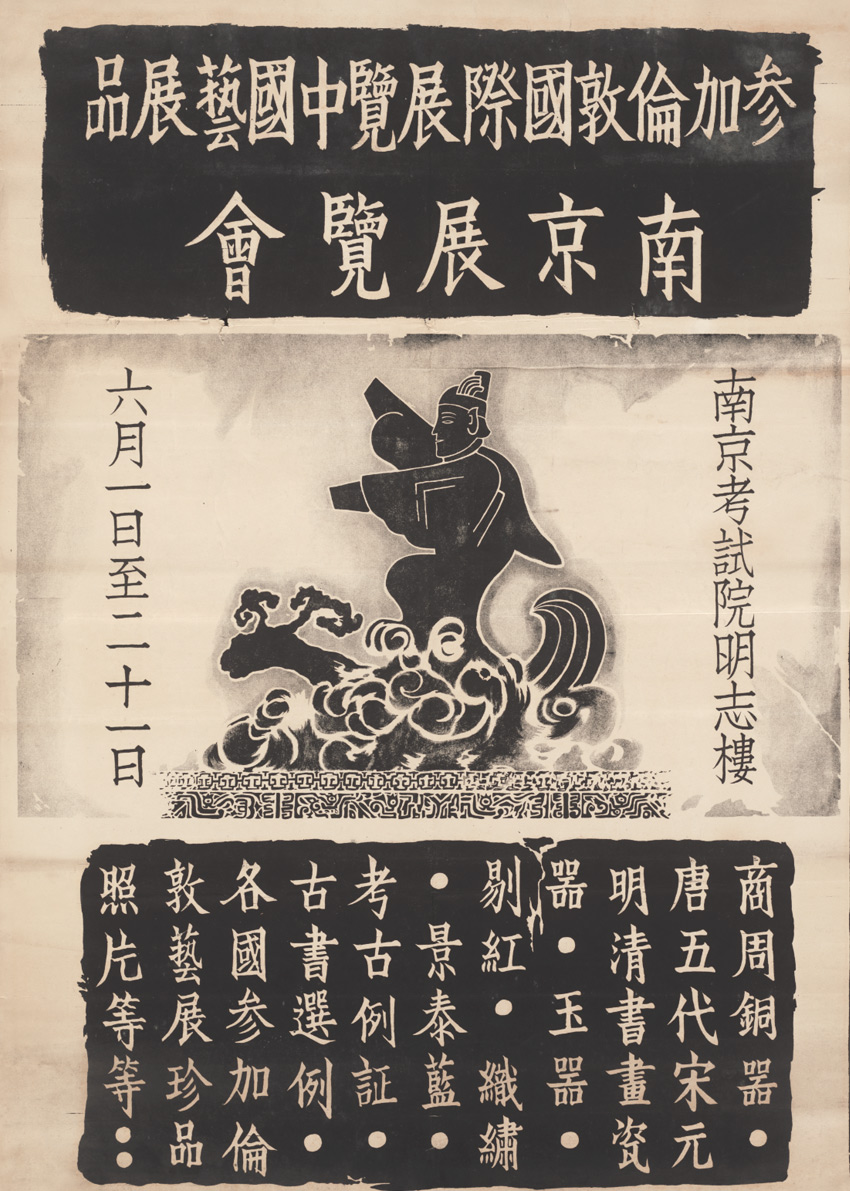 1936年5月18日,赴英参展古物安全抵达南京下关火车站,赴考试院明志楼存放。6月1日,“参加伦敦中国艺展会展品南京展览会”在考试院明志楼开幕,这次展览目的在“使国人对参加伦敦展览会古物重加印证,且借此得知吾国古物流传国外之情形及其收藏所在”。展览期间,雷震、滕固等在讲演及文章中反复向公众阐明南京展览会的目的和意义:“我国古物在伦敦展览时,国外公私收藏家参加者极多,均为我国历史上名贵古物。现经摄影参加陈列,可使吾人对古物流落国外,发生无限悲痛感想,而唤起国人保存古物之注意。”1936年6月1日至22日,南京展览会共接待参观者近6万人次,日均接待观众2500人次,超过了上海预展会的日均参观人数。