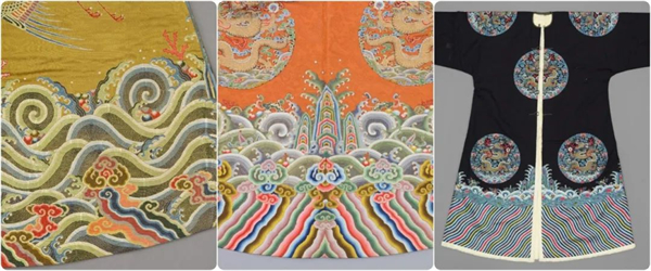 介绍完服饰的分类,又进一步从面料、款式、颜色、纹样、饰物五个方面讲述了清代宫廷服饰的等级制度。从面料上来,以端罩为例,等级越高使用的皮料越稀有珍贵;从款式上来说,开裾数量与服饰的等级密切相关;从颜色上,明黄是等级最高的,显示了至高无上的权利,只有皇帝、皇后、皇太后可用。从纹样上来说,