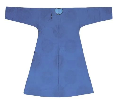 另一方面,清朝时期的服色沿袭明朝深色制度,从而使石青色在清代成为最重要的衣色。所谓袍褂不分家,在常服之外在正式场合都要罩石青色外褂。礼、吉服袍领、襟、袖以及披肩等部位的典制搭配色,深青色(石青或元青)缘饰成为清代衣饰风格一大特色。这一特色也促使这时候的靛染技术达到高峰,石青色呈现了多种色阶,表现十分丰富,在当时可谓“国采第一”。乾隆年间宫廷发交三处织造织解缎匹颜色单中即有石青、元青、红青等名目。其中红青(隐隐透出暗红的石青色)是乾隆的最爱,弘历一年四季所穿绸、缎、纱等材质褂多用红青色,据说是品质非常好的靛料才能染出。明清时月白为流行色,到了清中期紫色系开始流行,这其中包括绛色、酱色、藕荷、玫瑰紫、枣红、青莲。装饰手法有三蓝晕色,有继承明代配色传统的闪色,装饰纹样有经典设计海水江崖纹,工艺上充分运用金丝与各种彩色丝的交织,更显宫廷服饰的华丽富贵。
