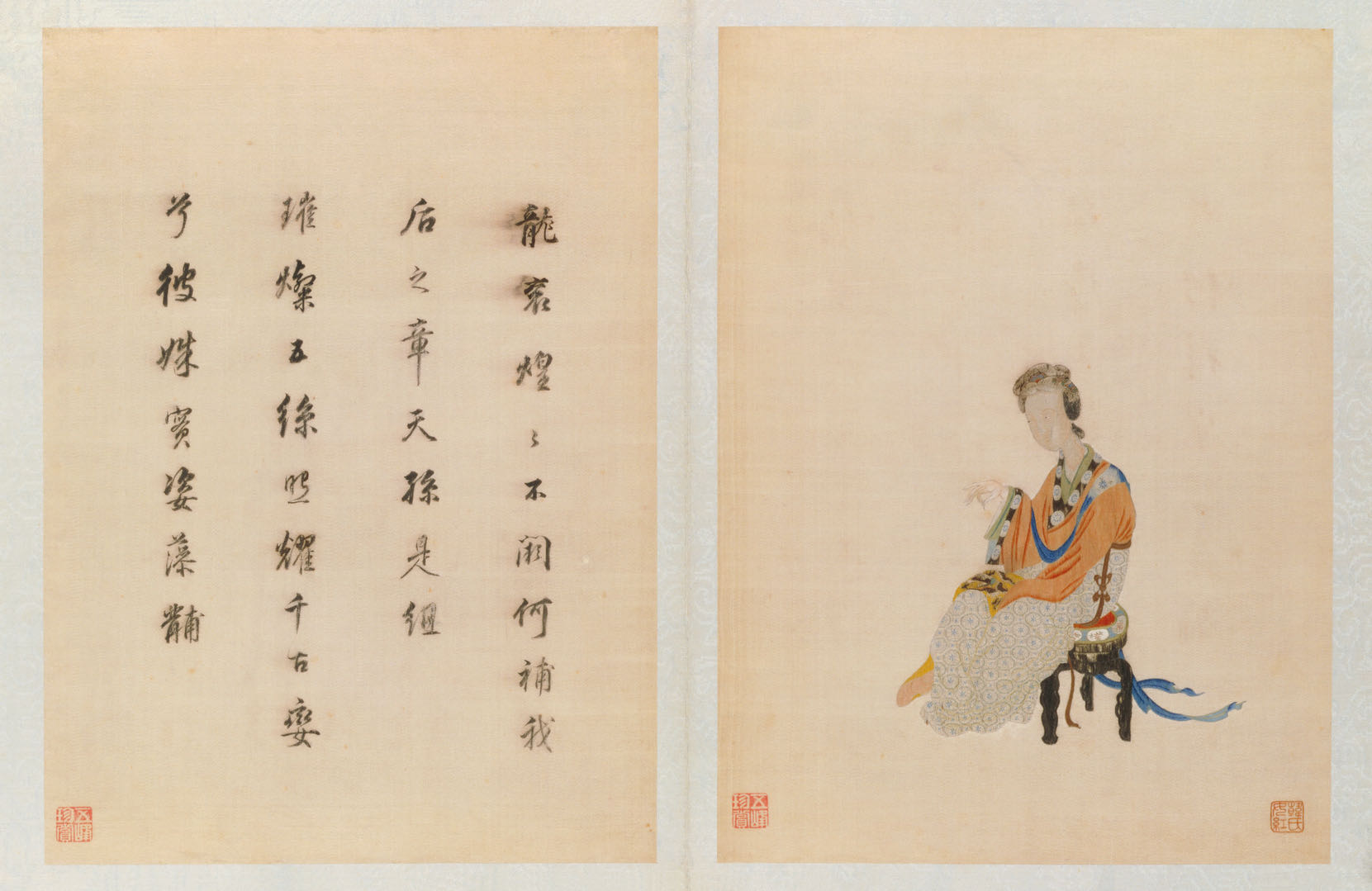 韩希孟绣宋元名迹册“补衮图”页,董其昌赞其“璀璨五丝,照耀千古”
