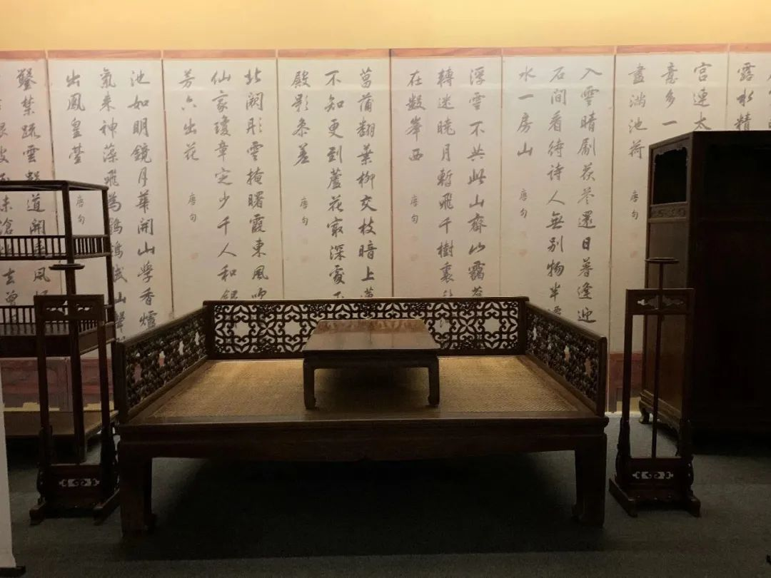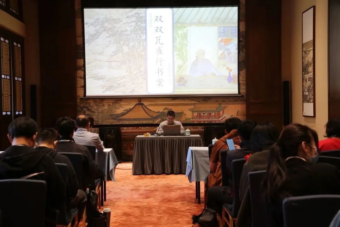 讲座伊始,黄剑老师简单介绍了讲座题目缘起:讲座副标题——以午门国子文脉展中的家具陈设为例,大家可猜想到,应该是一个以书房为主题的原状陈设。“国子文脉”展以书法作品为主,有一条完整的脉络来帮助大家理解什么是国子文脉。书房的陈设场景只有两处,空间非常有限,家具的数量也非常有限。决定要做一个书房的原状陈设的时候,不由想到了宋代叶采的《暮春即事》,也就是讲座的题目“双双瓦雀行书案”。这首诗清楚地把当时文人书房的趣味写得淋漓尽致。黄老师从文震孟的扇面讲起,联系到文震孟的弟弟文震亨及其著作《长物志》,逐渐展开涉及家具陈设、布置的方法与原则。通过有限的空间,有限的数量来展示家具发展的脉络,希望借助本次讲座,也能让大家从每一个品类了解到中国家具发展的历史。