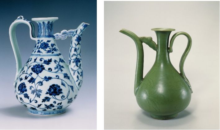 第二部分,王光尧老师通过一系列精彩图片,介绍了明代宫廷用瓷的来源、特点和产地。如洪武青花云龙纹盘,洪武釉里红缠枝牡丹纹军持,明初饶、处二州的产品对比,永乐时期饶、处二州的产品对比,宣德时期饶、处二州的产品对比,永乐青花狮球心压手杯、永乐青花花卉纹阿拉伯式烛台、宣德青花蓝查体梵文出戟盖罐、嘉靖瓜皮绿釉暗花云凤纹尊、万历黄地三彩龙纹盘、钧窑月白釉出戟尊、钧窑玫瑰紫釉葵花式花盆、钧窑天蓝釉鼓钉三足花盆托、天蓝釉花盆、钧窑盘、2004禹州钧台窑盘、2004禹州钧台窑出戟尊、1974禹州钧台窑盆托、一组2004禹州钧台窑钧瓷片、新发现的钧窑双系扁瓶、明磁州窑暗蕉叶牡丹纹出戟尊、明磁州窑暗缠枝莲纹葫芦瓶、明磁州窑暗凤纹双耳扁壶等等。