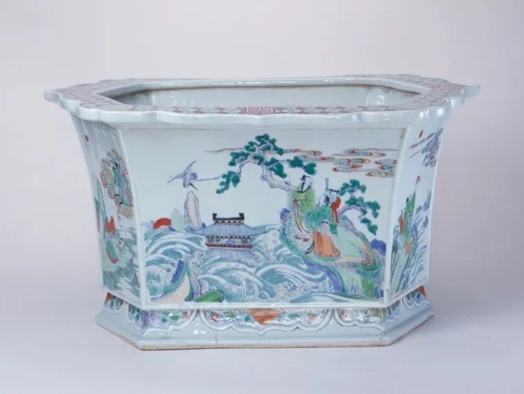 第三部分,王光尧老师向大家讲解了清代宫廷用瓷器的特点、产地和来源:顺治八年江西监察额造的龙纹盘、康熙青花五彩人物纹瓶、康熙斗彩山水人物纹菱花口花盆、康熙御制款紫地珐琅彩、康熙款豇豆红釉菊瓣瓶、雍正早期的珐琅彩(以雍正款珐琅彩黄地兰石小碗为例,解说施彩工艺)、雍正中期以后的珐琅彩(特点是:1、在釉上施彩;2、彩色品种增多)、康熙五彩人物纹碗、乾隆蛋黄釉盖盒、嘉庆斗彩瓜蝶纹瓶、嘉庆青花云龙纹螭耳瓶等等。