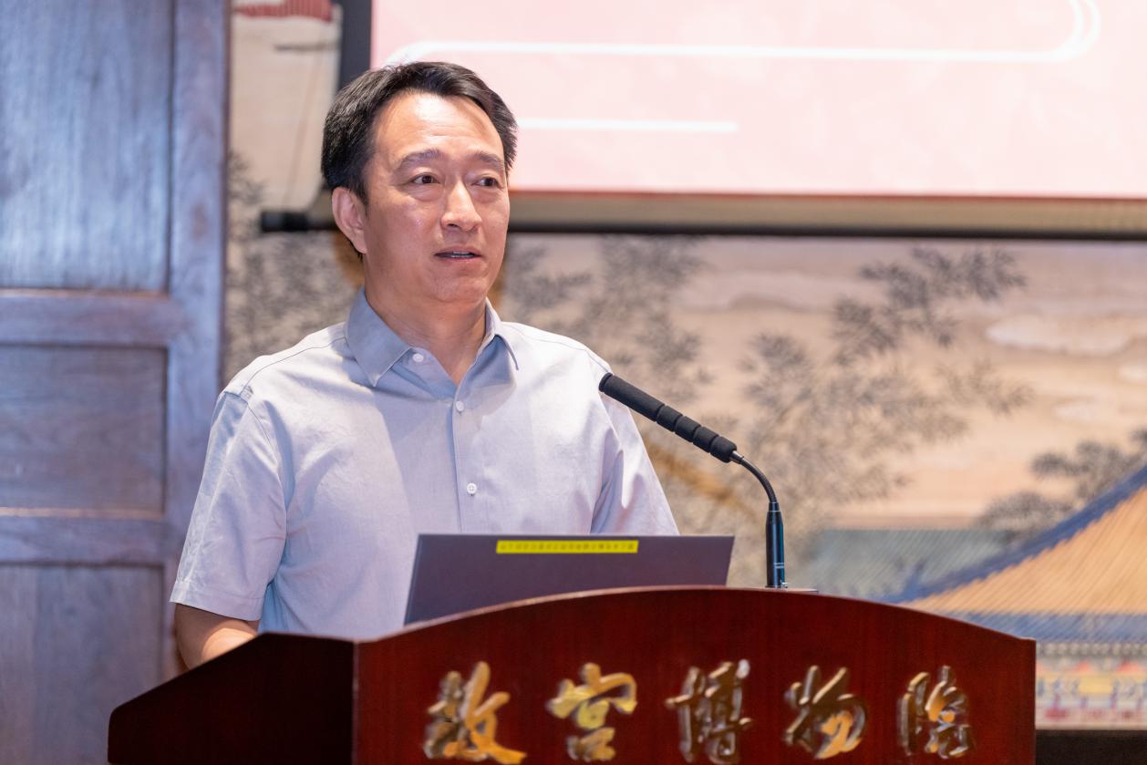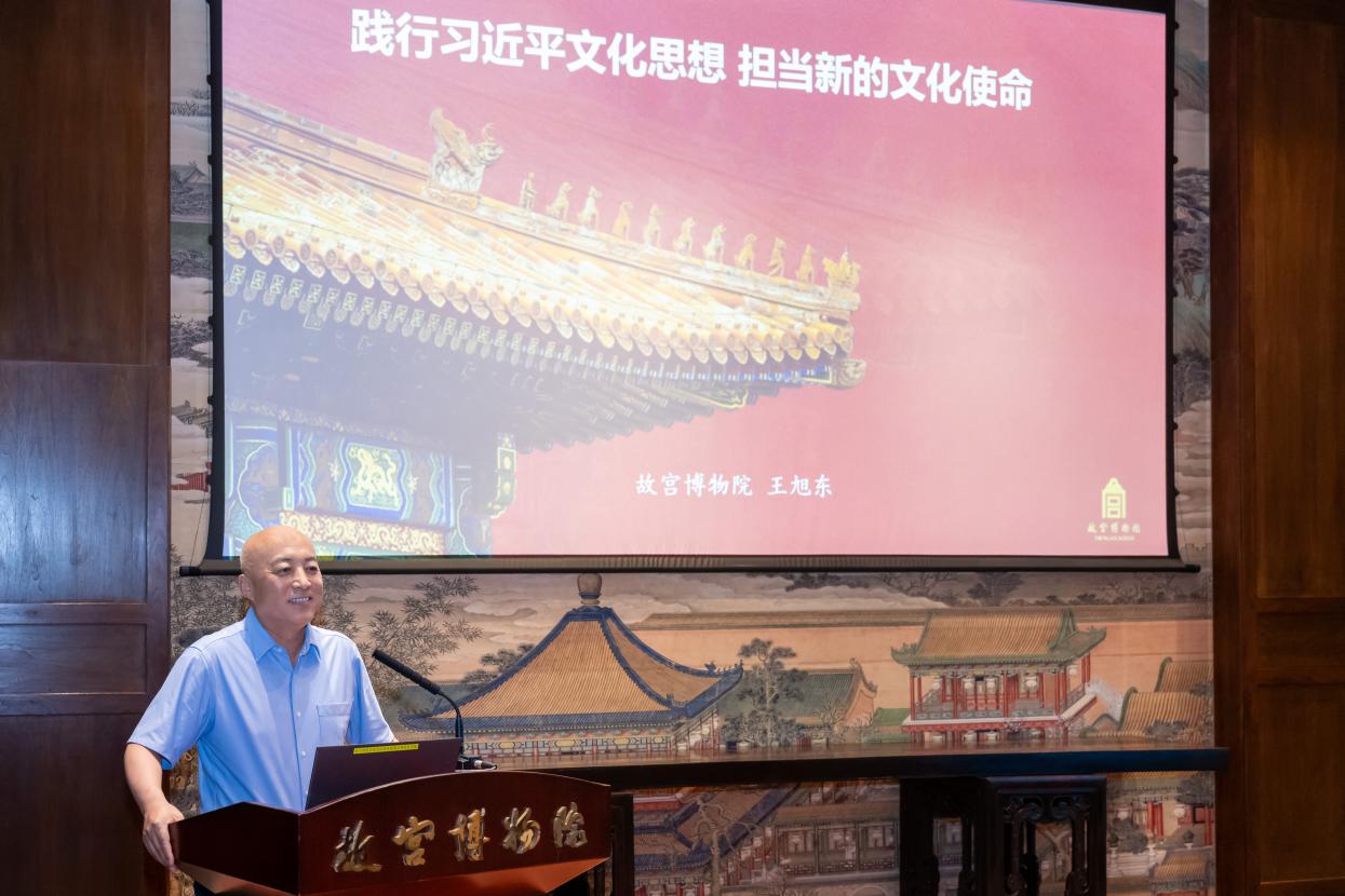 故宫博物院院长王旭东致辞时向教师代表和30位学员表示热烈欢迎,感谢国家艺术基金对项目的大力支持以及陕西师范大学的积极协助,感谢国家文物局在故宫文物保护与活化利用方面给予的指导,对学员们参与此次学习培训的过程和结果都充满了期待,他表示故宫博物院主办此次培训是深入学习贯彻落实习近平文化思想的生动实践。
