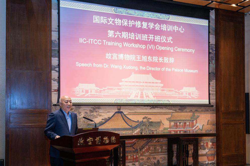 7月24日,开班仪式在故宫敬胜斋举行。故宫博物院院长王旭东、国际文物保护修复学会主席理查德·朱利安·别克斯蒂、文化和旅游部国际交流与合作局(港澳台办公室)一级巡视员李亚莹、国家文物局科技教育司司长罗静、龙湖集团高级副总裁宋垚等相关领导与嘉宾出席。故宫博物院副院长王跃工主持开班仪式。