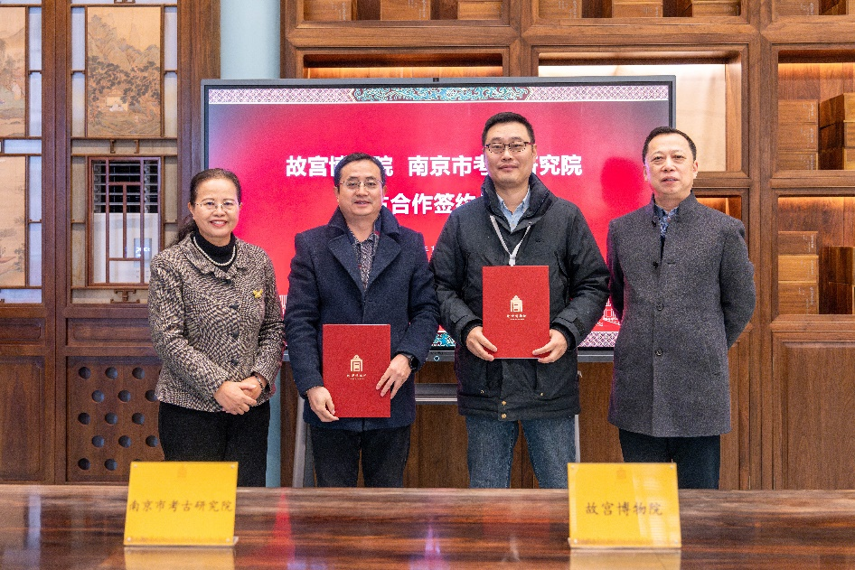 南京市文化和旅游局文物管理处(考古处)处长童莉、故宫博物院考古部副主任王睿等参加签约仪式。