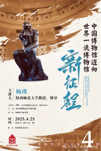 博物馆学沙龙第4期2025年4月25日上午在故宫科研处会议室举办,活动由故宫博物院故宫学研究院主办,博物馆学研究所承办。陕西师范大学历史文化学院教授、博士生导师杨瑾作主题讲座《中国博物馆迈向世界一流新征程》。故宫博物院院办公室副主任段颖副研究馆员担任主持。院办公室、科研处、宫廷历史部、书画部、展览部、社会教育部、出版编辑部、档案馆、行政处等部门的10多位同仁参加活动。