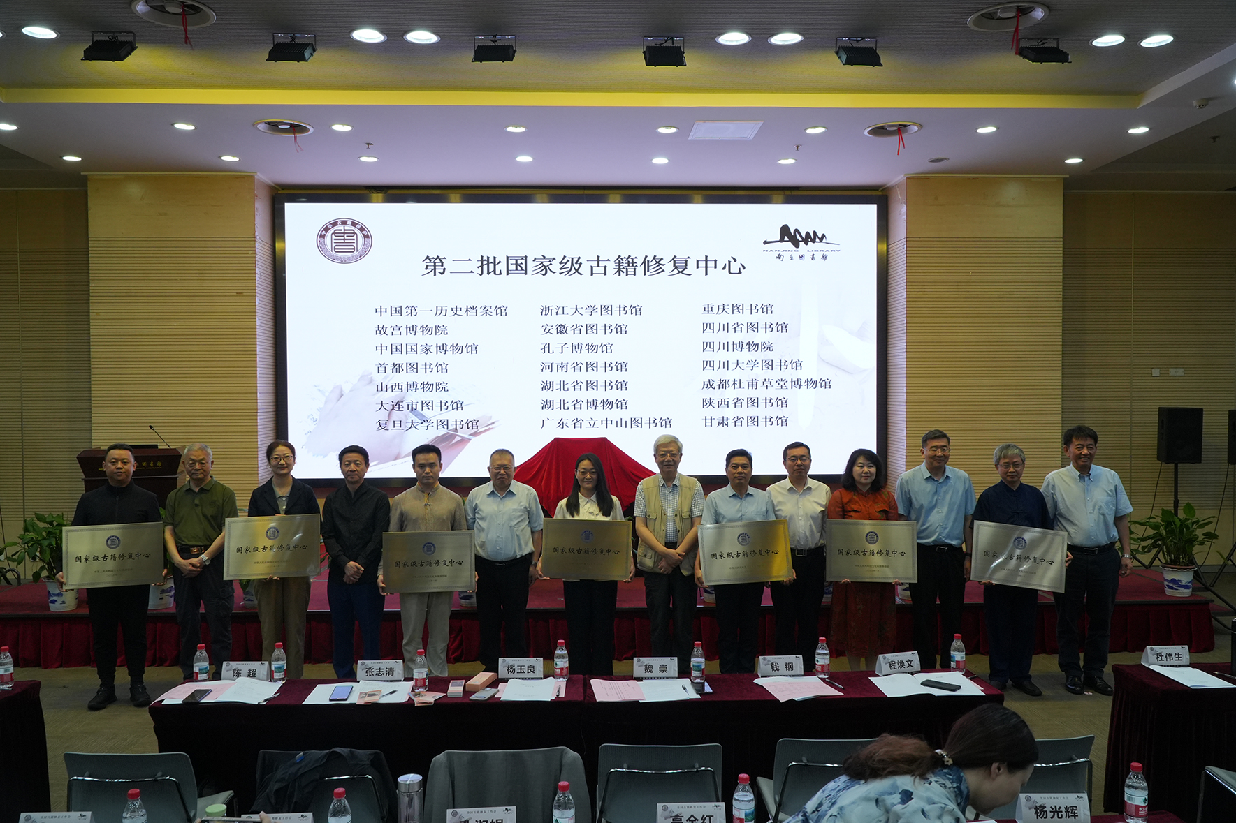 “第二批国家级古籍修复中心”颁牌仪式(南京图书馆提供)
