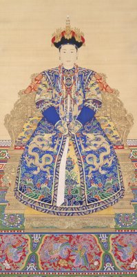 是年 命御史莽鹄立绘圣祖御容,奉景山寿皇殿,凡遇圣诞、元旦等节奠献。定礼服用石青、明黄、大红、月白四色缎,花样三色,团金龙九,龙口珠各一颗,腰襕小团龙九,周身五彩云,下八宝平水,万代江山。