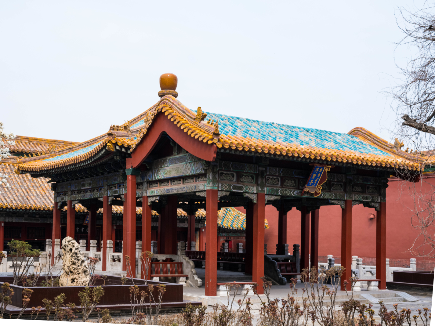 承托建筑物檐宇部分的构件。主要由方形的斗和弓形的栱经多重交叉组合而成。每一组合称一攒。按安装部位分科,位于柱头上的称柱头科,位于屋角柱上的称角科,分布于柱间部位的称平身科。斗栱对屋檐有支撑和减震作用,也有较强的装饰性,因此,多用于较高等级建筑上。斗栱发展至清代,被作为建筑模数使用,一座建筑的所有尺度均以斗口为单位,长度同于最下坐斗的开口大小。