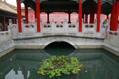 池中水引自护城河,池壁雕有石蟠首出水口,池中芙蓉出水,游鱼穿泳,为御花园的景色增添了清新活泼的情趣。