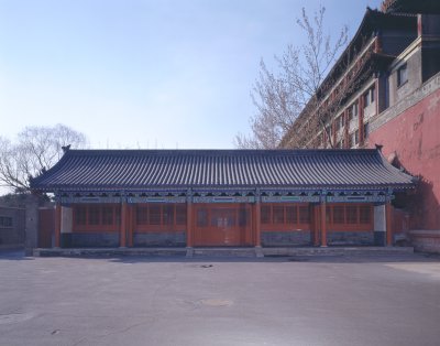 文华殿在太和殿之左,协和门之外,明嘉靖朝以前为皇帝之便殿,以后用为皇帝讲经筵之所。清袭明制。明中期,这里是皇太子摄政之地。明光宗崩,大臣刘一燝、杨涟等将皇太子从乾清宫扶至文华殿,遵其前制故。