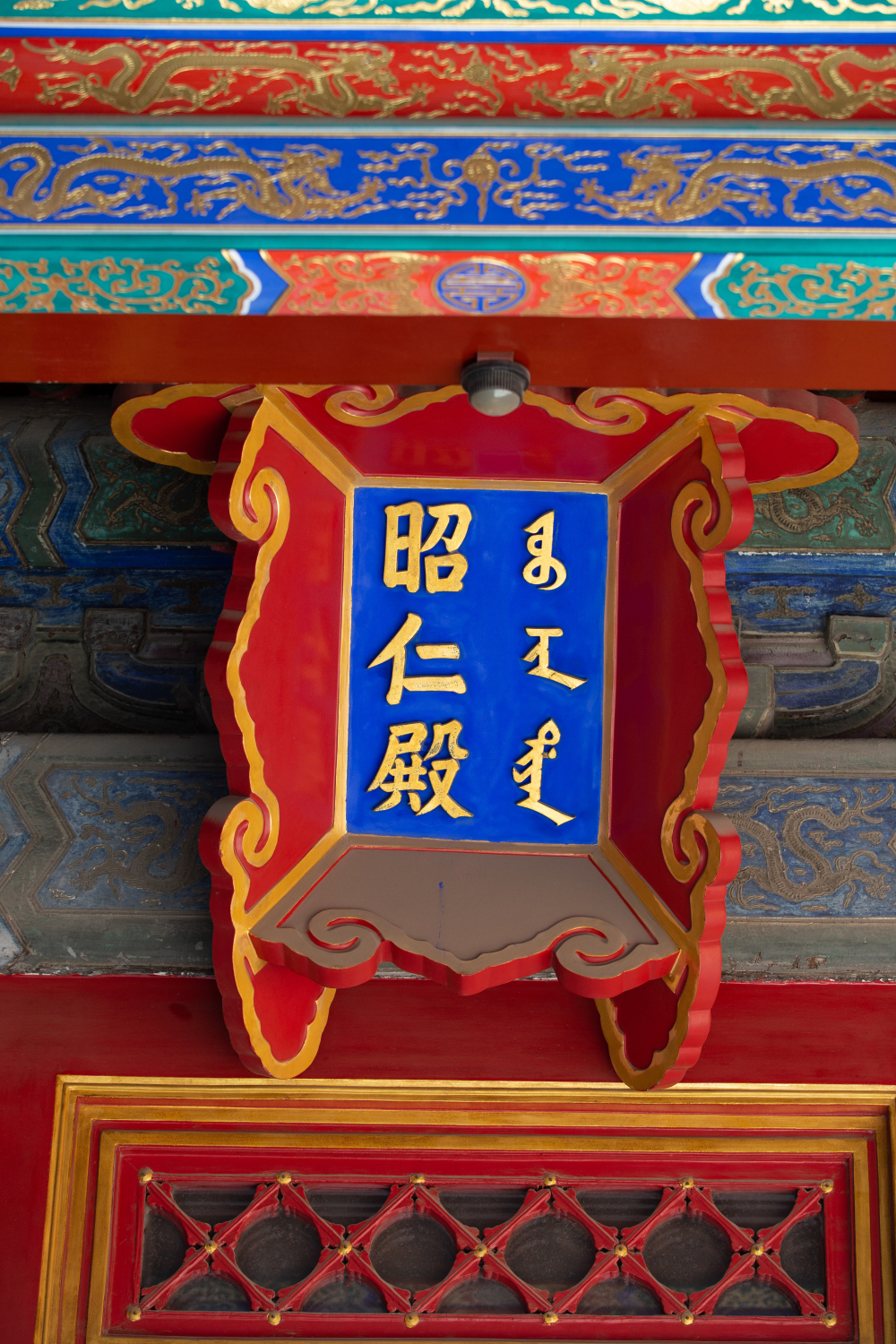 昭仁殿南向,单檐歇山顶,上覆黄琉璃瓦。面阔3间,正中明间辟门,两次间槛窗。殿前接抱厦3间。明时,殿前有斜廊通乾清宫及东庑,清代改廊为砖墙,自成一院,有小门以通内外。殿后接室3间,均为藏书之处。殿之东设龙光门,明代已有,是正宫通向东路的安全出口。
