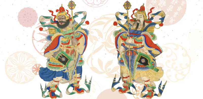一进展厅,故宫博物院典藏的文物门神正在红色垂帘上恭迎来者。憨态可掬的门神时而眨眼,时而微笑,既有护佑的威武又生动有趣。